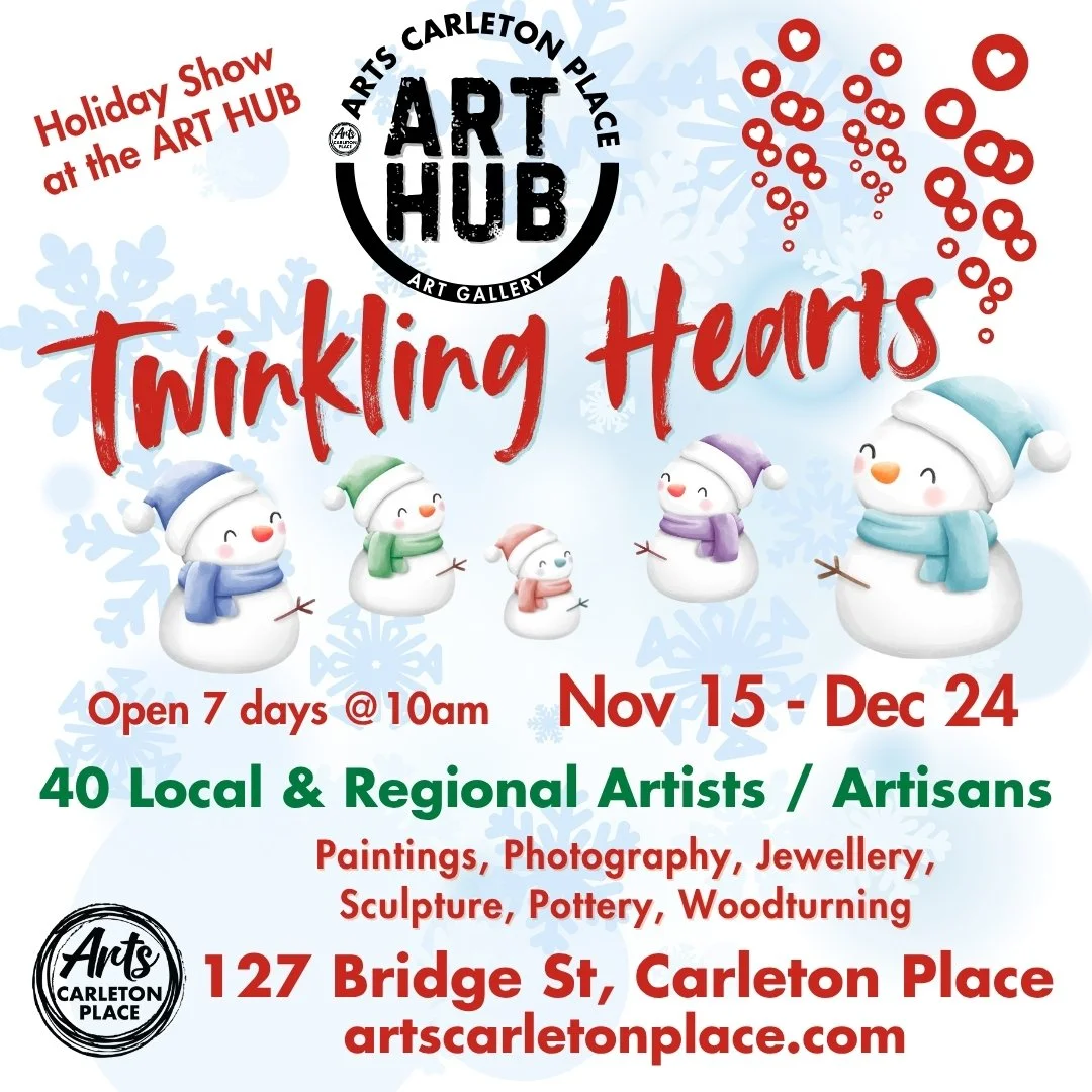 Arts Carleton Place partners with local businesses and the Town of Carleton Place to showcase our members’ art. The public can view the art during business hours and can be purchased by contacting Arts Carleton Place.