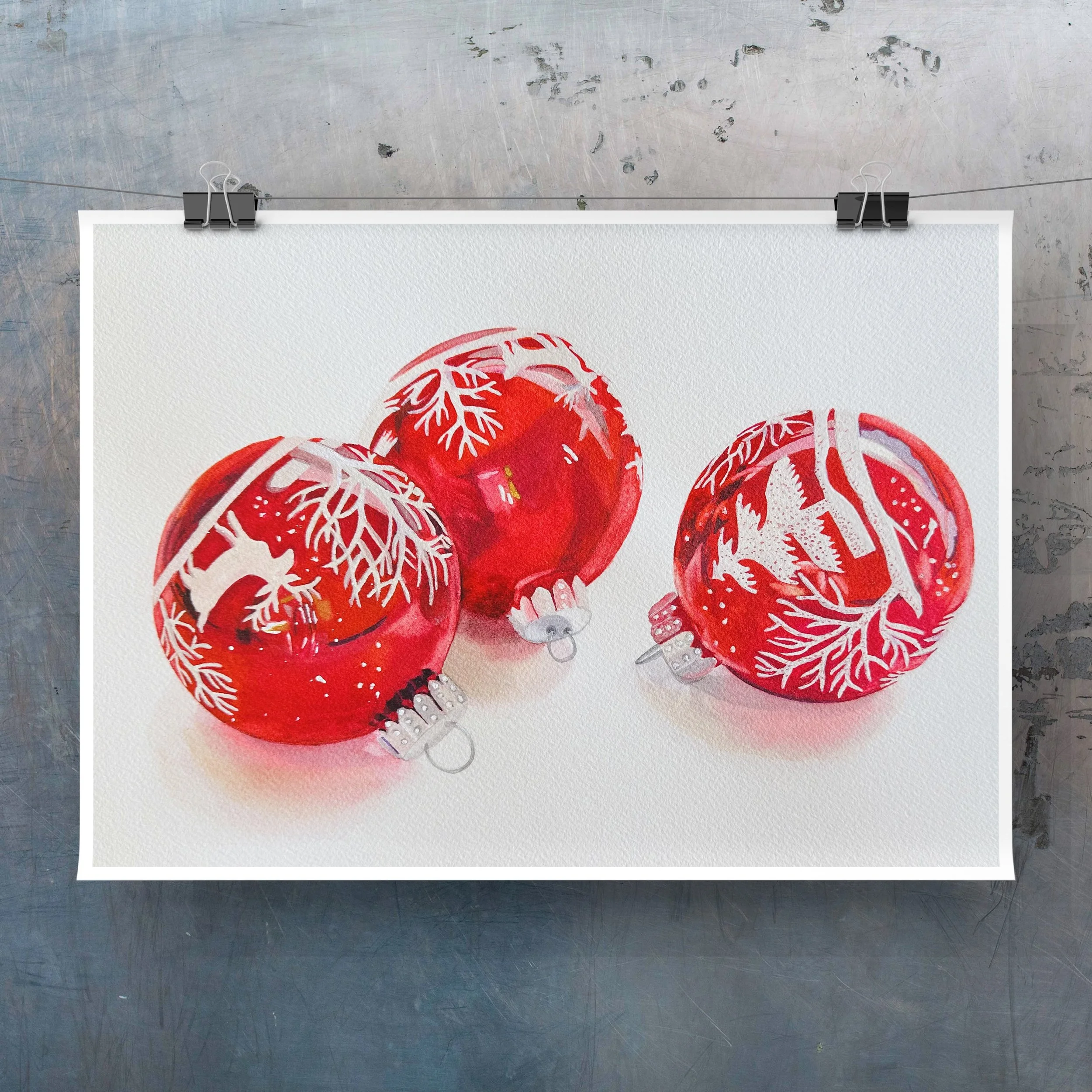 This Christmas Baubles Fine Art Print features vibrant red and intricately detailed Christmas glass baubles. Printed with the highest quality giclee technique, this fine art piece adds a touch of elegance and holiday cheer to any room. Deck the halls with this festive and beautiful print.